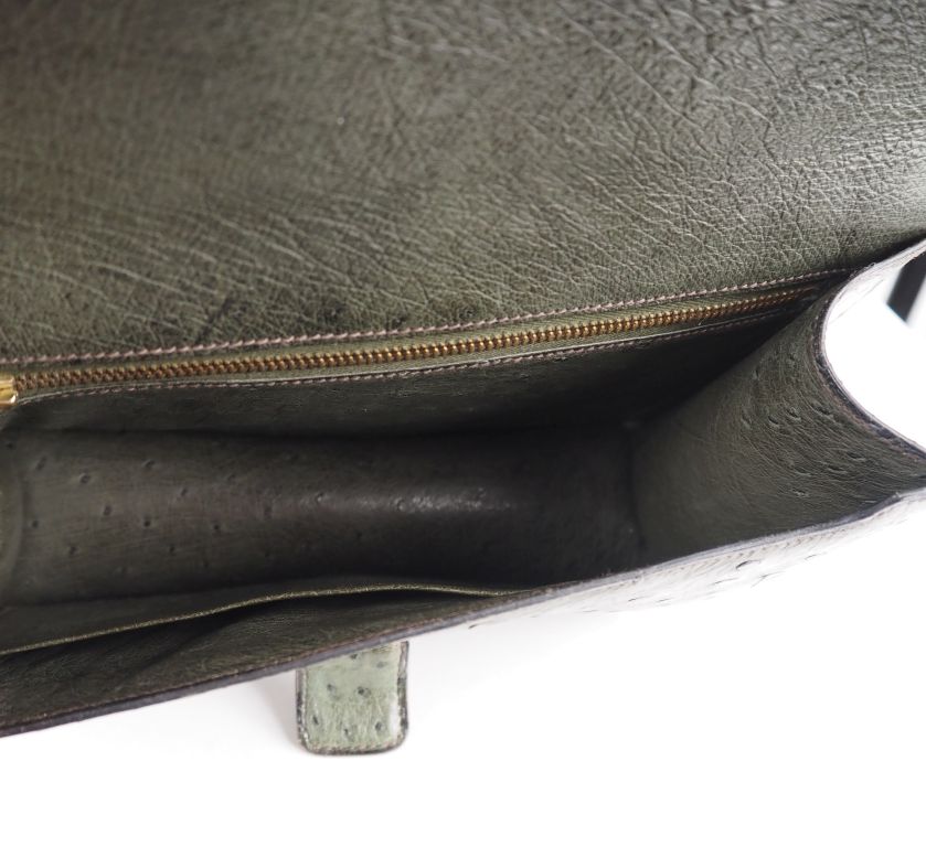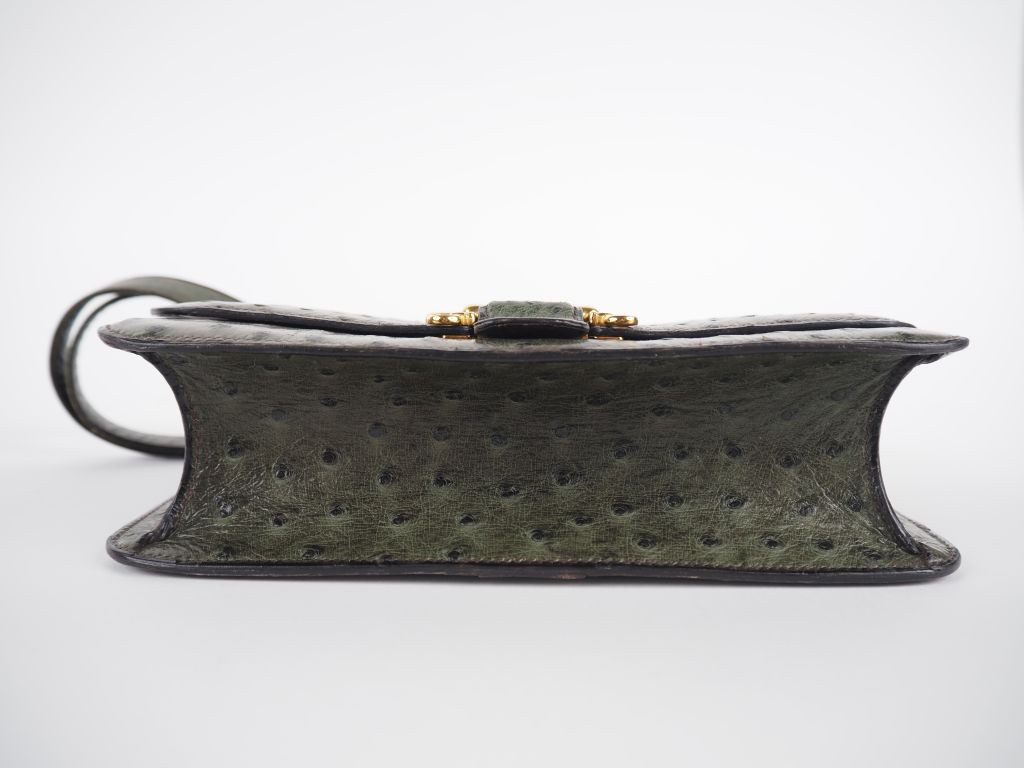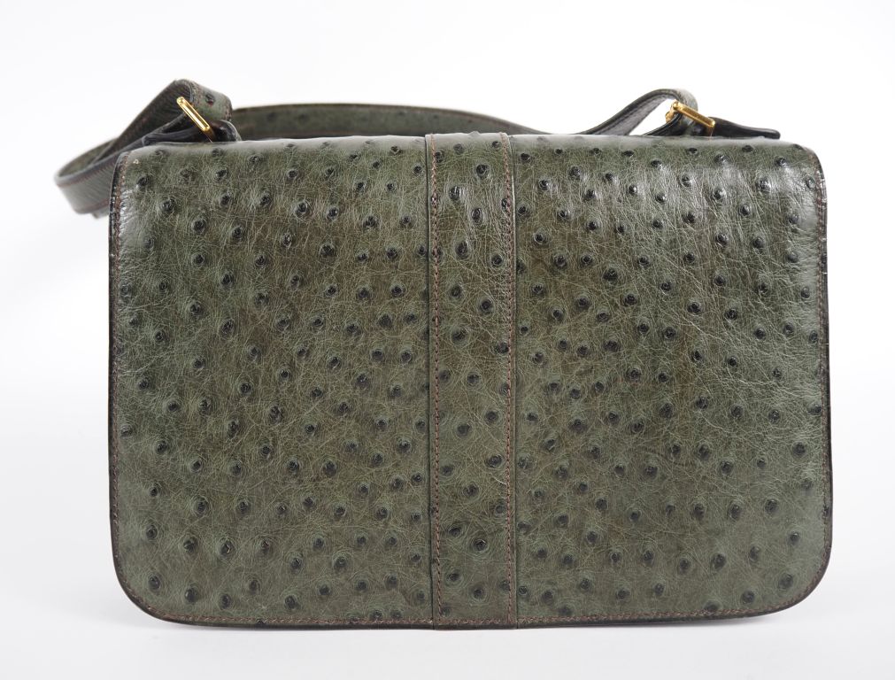 HERMES, Paris Sac porté épaule en cuir vert mousse, modèle "Sologne". 1976. Garniture en métal doré. Fermeture à rabat découvrant un intérieur à une poche plaquée et une poche à zip. Signé. 16 x 23,5 x 6 cm (petites usures, notamment à la anse)