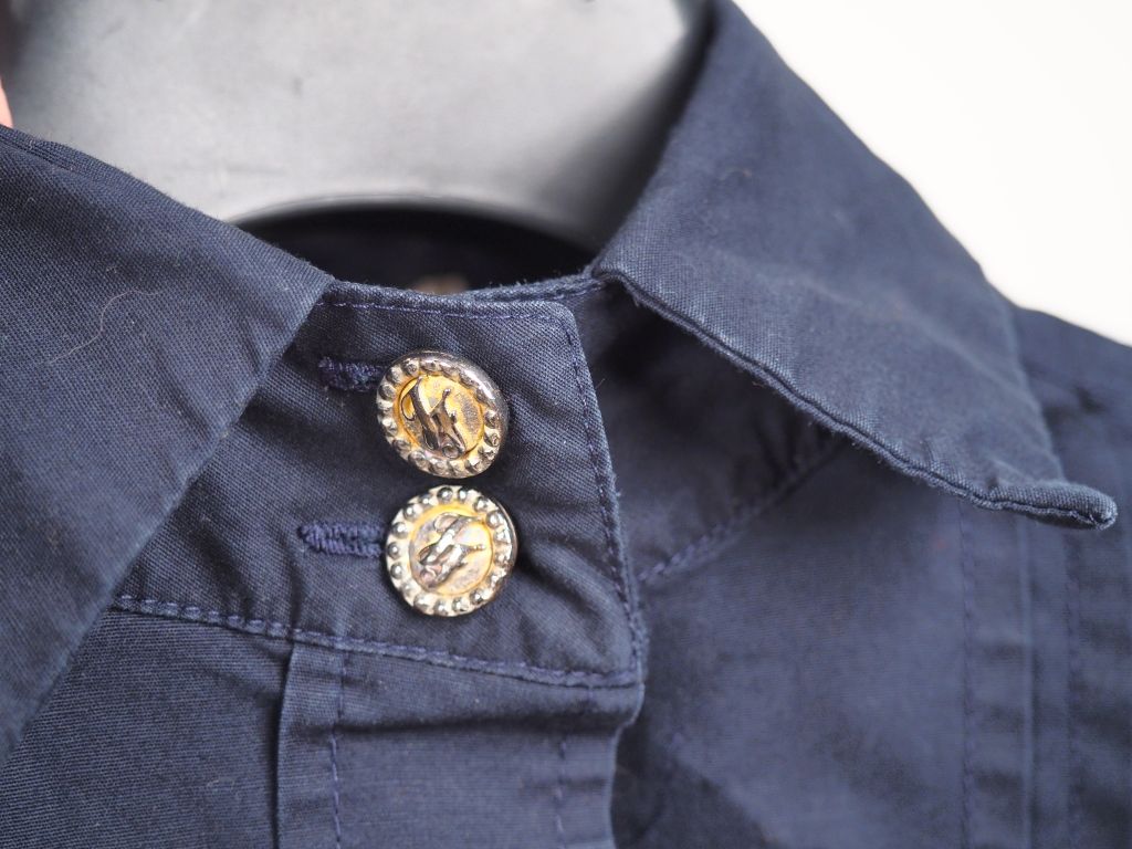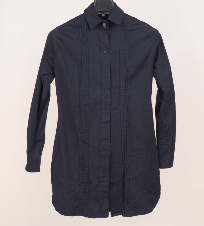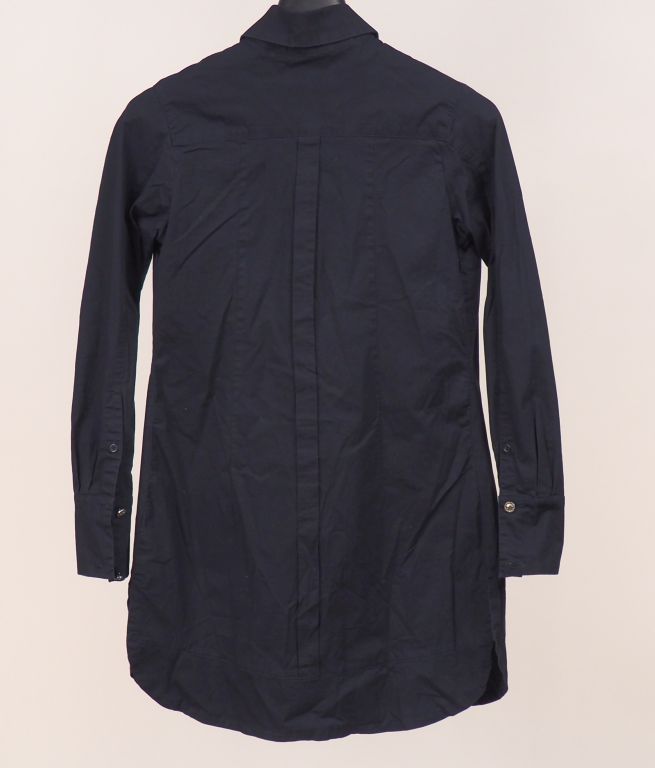 Inès de LA FRESSANGE Chemise noire en coton (97%), à décor de plis à l'avant. Fermeture par deux boutons en métal au niveau du col. Taille. L
