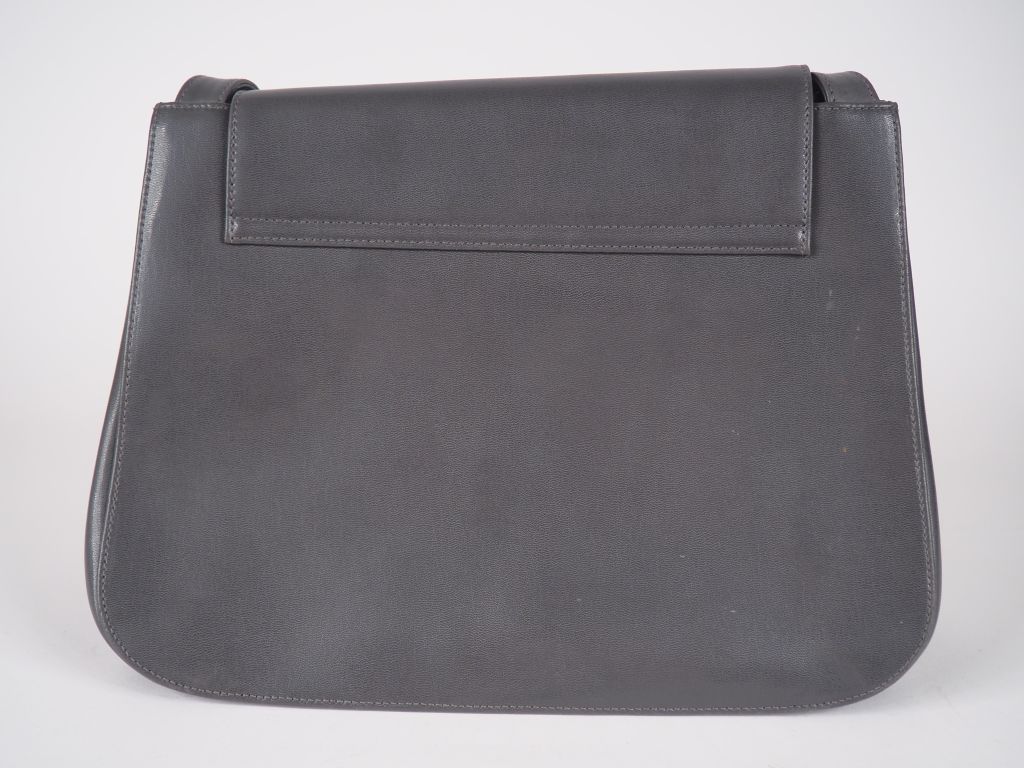 LANCEL Sac à main en cuir gris, signé.