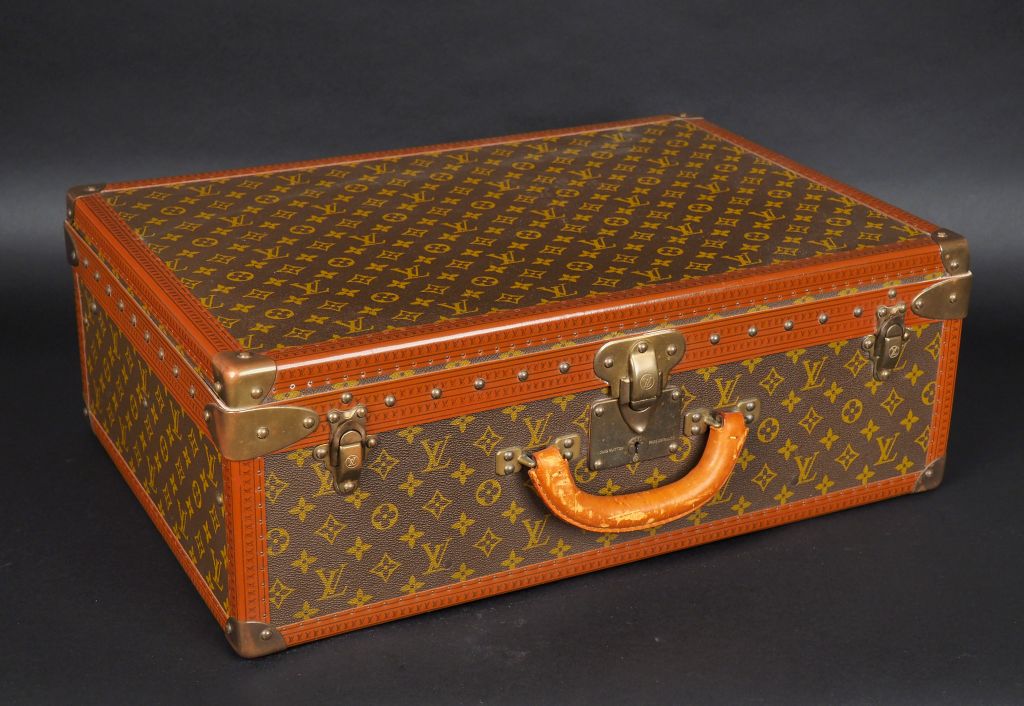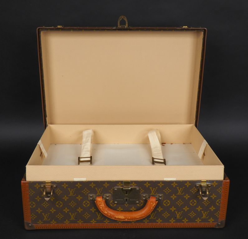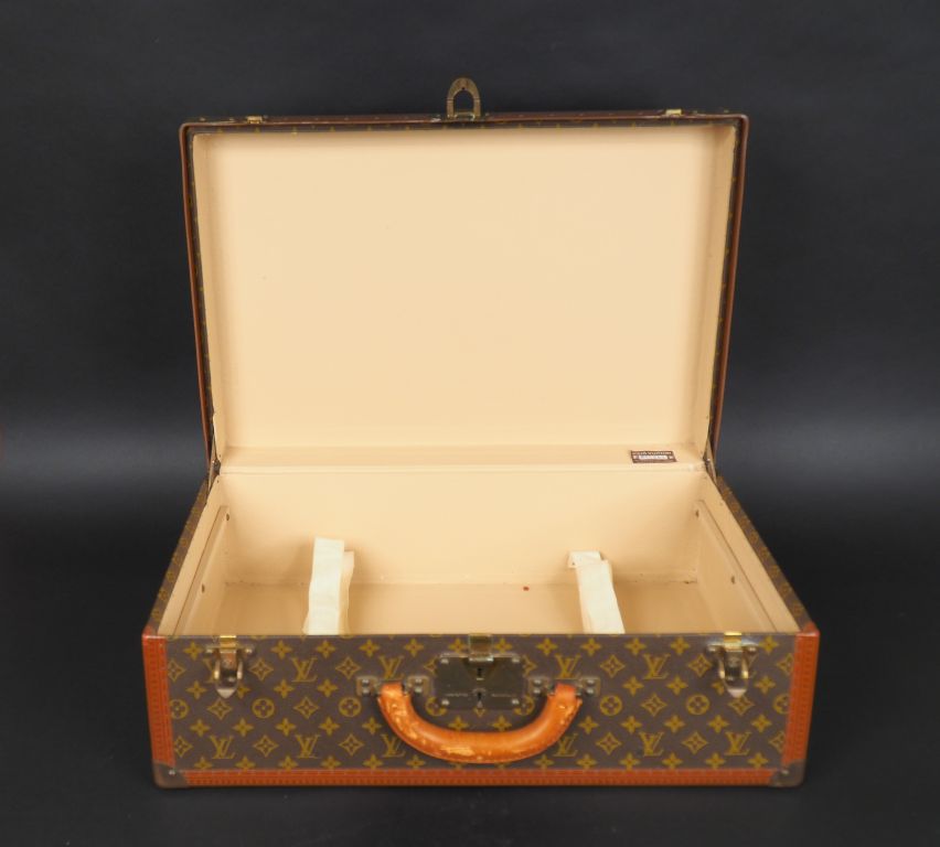 LOUIS VUITTON Valise Alzer Loziné. Modèle rigide avec toile monogrammée et châssis mobile. Garnitures en laiton poli. Numérotée. Bon état. Dimensions : 60 x 42 x 22 cm. Répertoriée en 7 tailles au catalogue LV de 1983. Expert : Geneviève Fontan