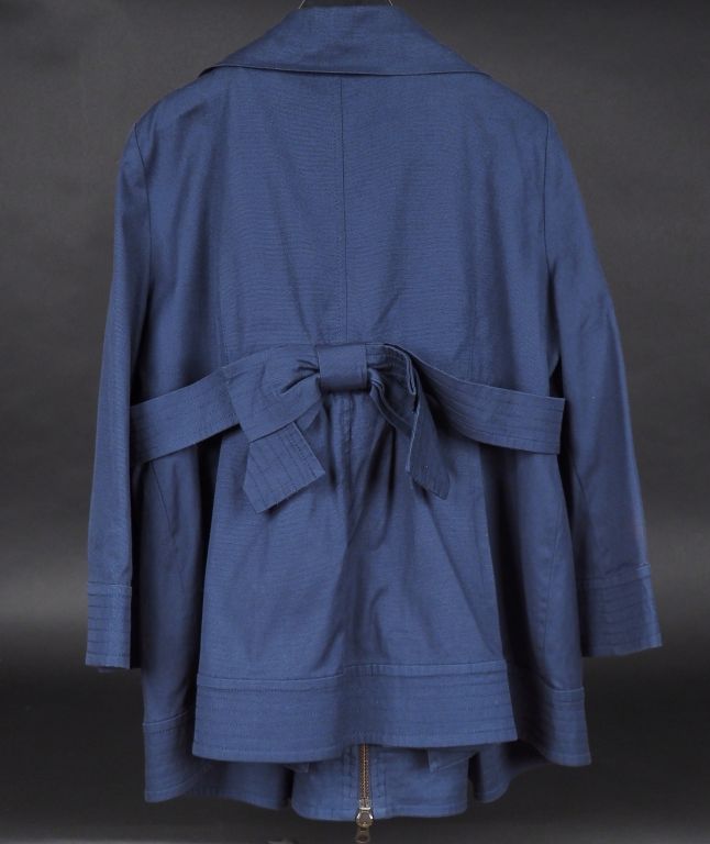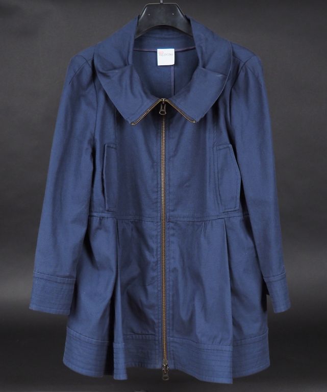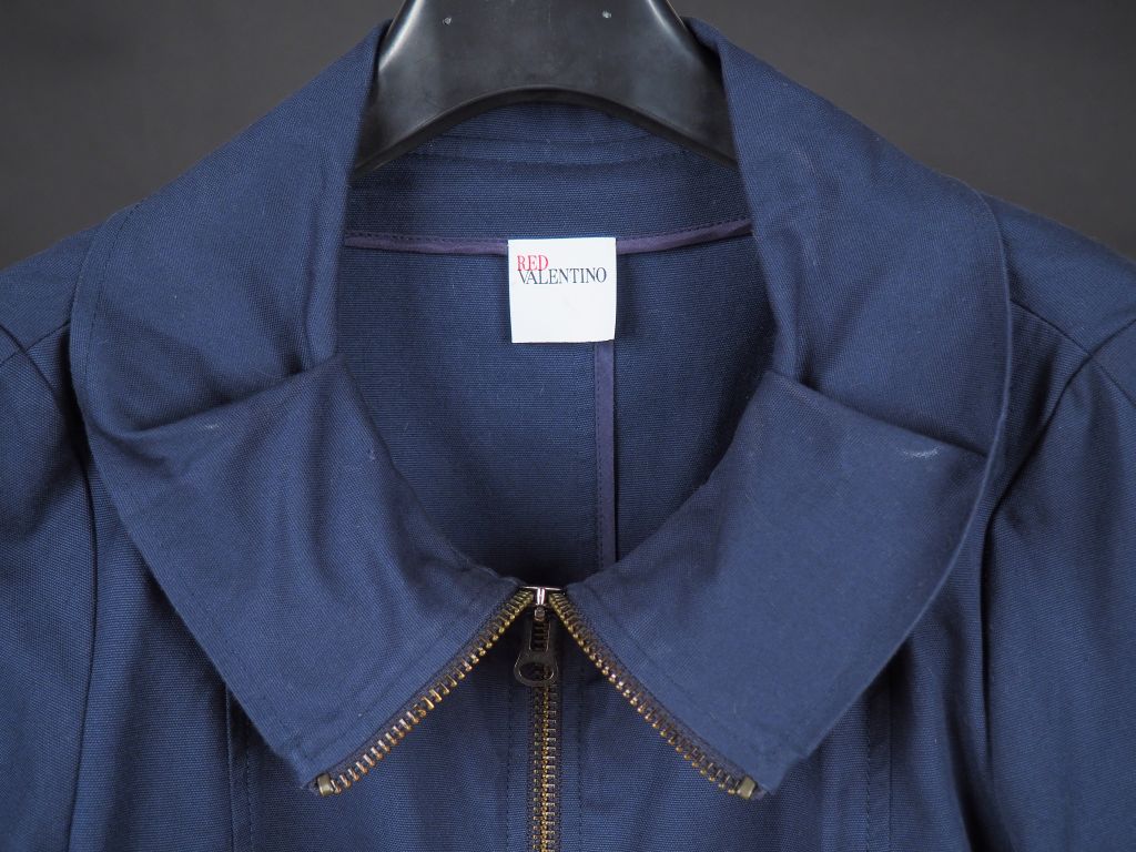 RED VALENTINO Veste bleue à col, en coton et élasthane. Deux fausses poches à rabat. Modèle SW12234 (quelques traces blanches).