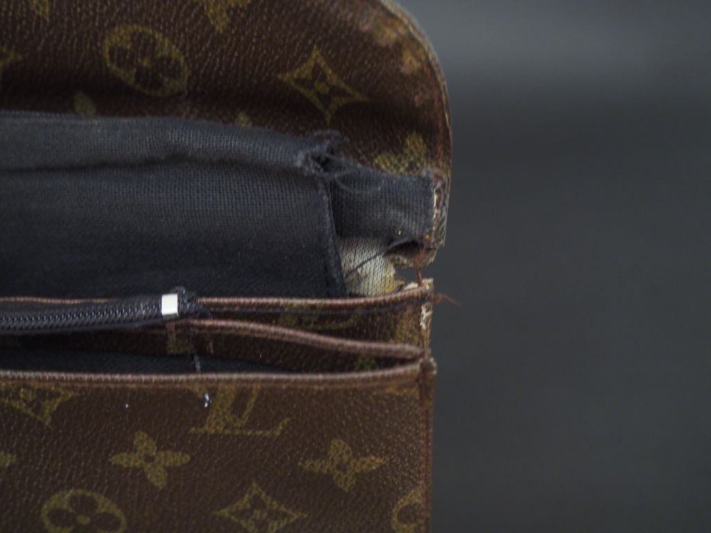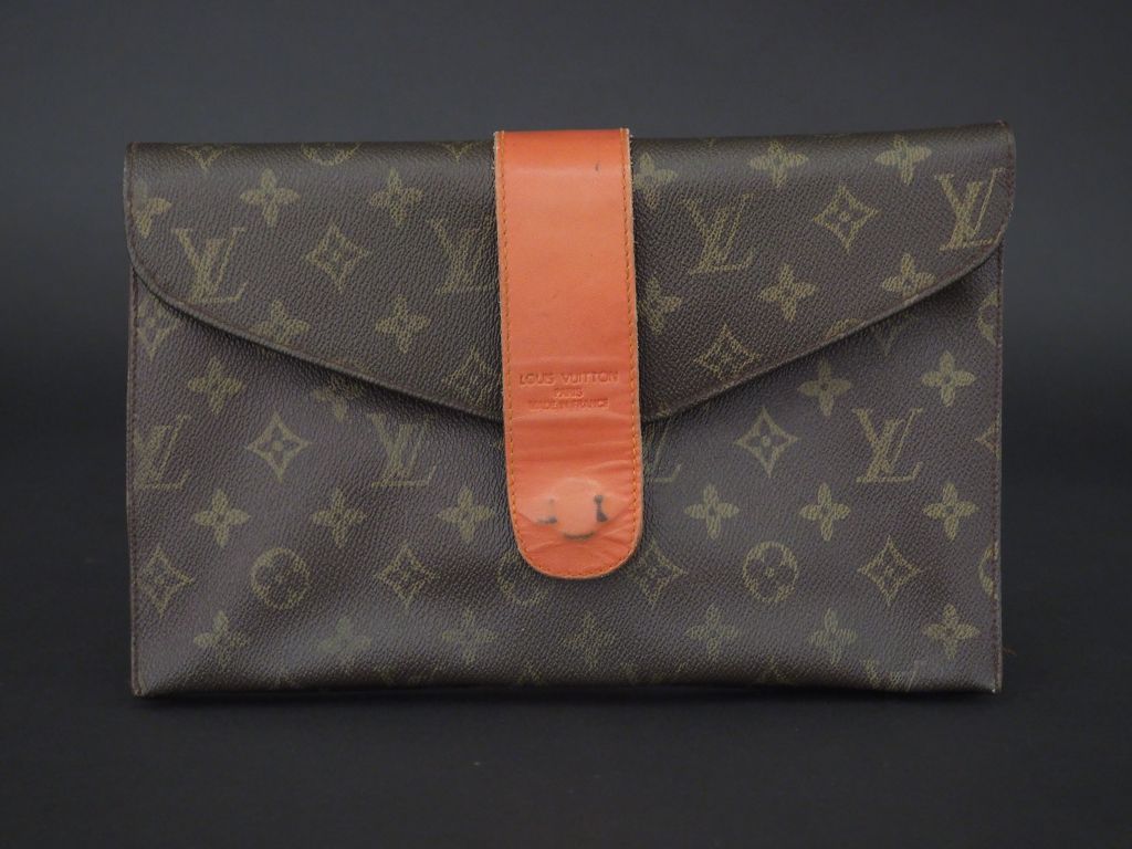 VUITTON. Pochette en toile Monogram marron Dim. 28 x 18 cm (déchirures et usures)