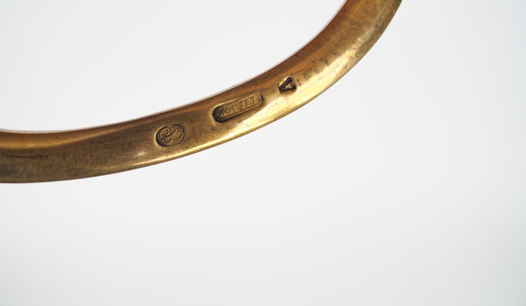 Sabre dans le goût d’un sabre de l’artillerie à cheval de la garde des consuls avec faux poinçon rectangulaire "Boutet" malhabilement frappé sur la branche de garde, faux poinçon « B » dans un ovale et faux poinçon « V » du vérificateur des montures de la manufacture. Monture simple en bronze fondu, calotte à longue queue, branche de garde joignant le pommeau par un enroulement, quillon arqué vers l’avant évasé et bombé(différent de celui spécifique du modèle), fusée en bois cordé habillée de cuir et filigranée, oreillons symétriques lisses, lame ancienne courbe à gorge bleuie et dorée au tiers (bleuissage contemporain) , fourreau en laiton simple avec dard laiton et deux anneaux larges et plats enrichis de fleurettes. Etat 1-. Belle évocation composite sur lame ancienne montage du 20ème siècle de qualité.