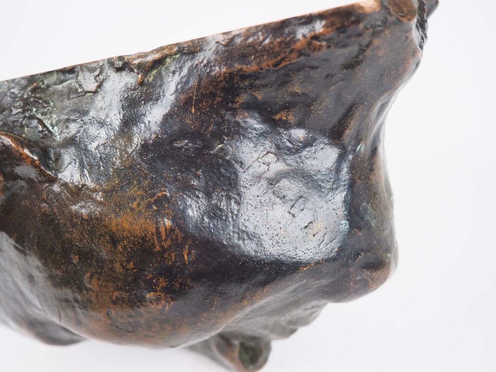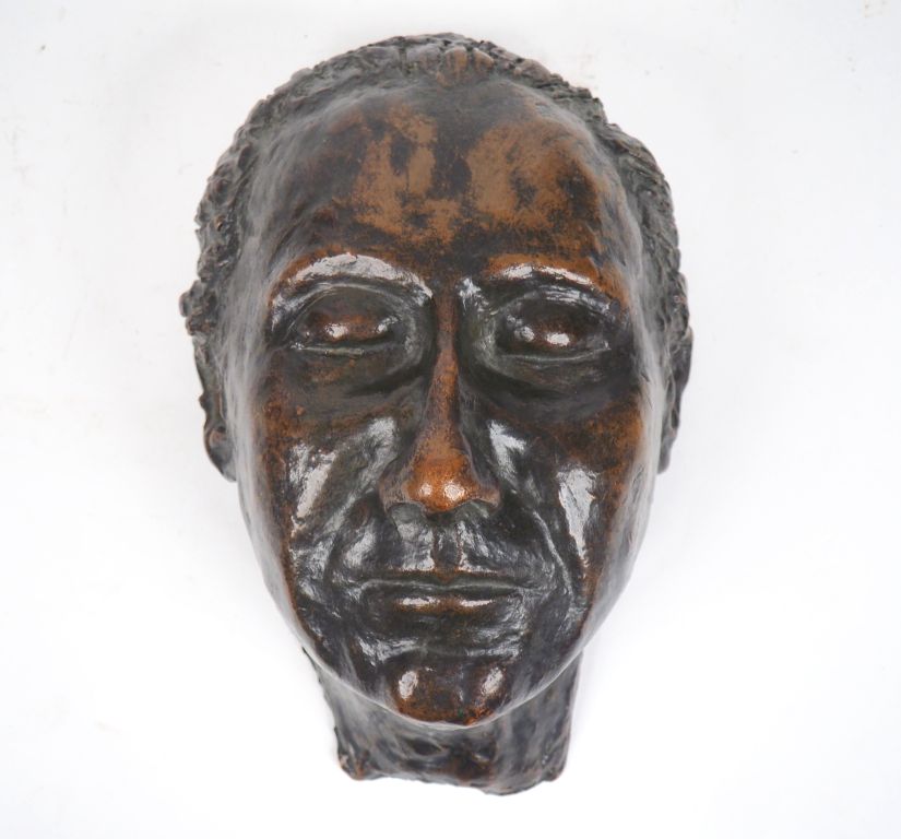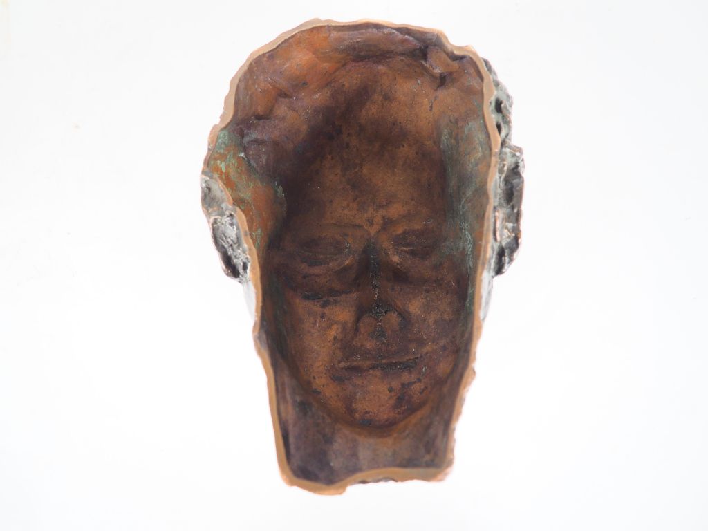 Augustre RODIN (d'après). "Masque funéraire". Sculpture en bronze à patine brune. Signée, porte le cachet du fondeur Alexix RUDIER fondeur Paris. Dim. 23 x 16 x 13 cm.