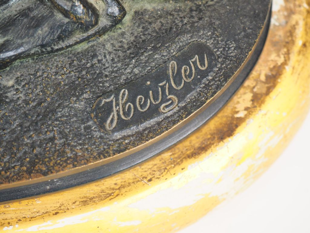 HEIZLER. "les deux lions". Sculpture en bronze à patine verte. Signée...