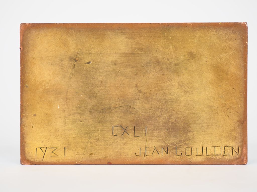 Jean GOULDEN. Boite Art Déco en émail. Signée et datée 1931. Dim. 2 x 9 x 5,7 cm. (Petits éclats et sauts d'émail).