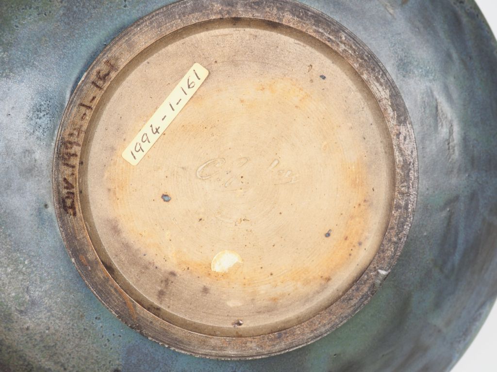 Charles GREBER. Deux coupes de style Art Déco en grès polychrome. Signées. Dim. 2,2 x 19,5 cm.