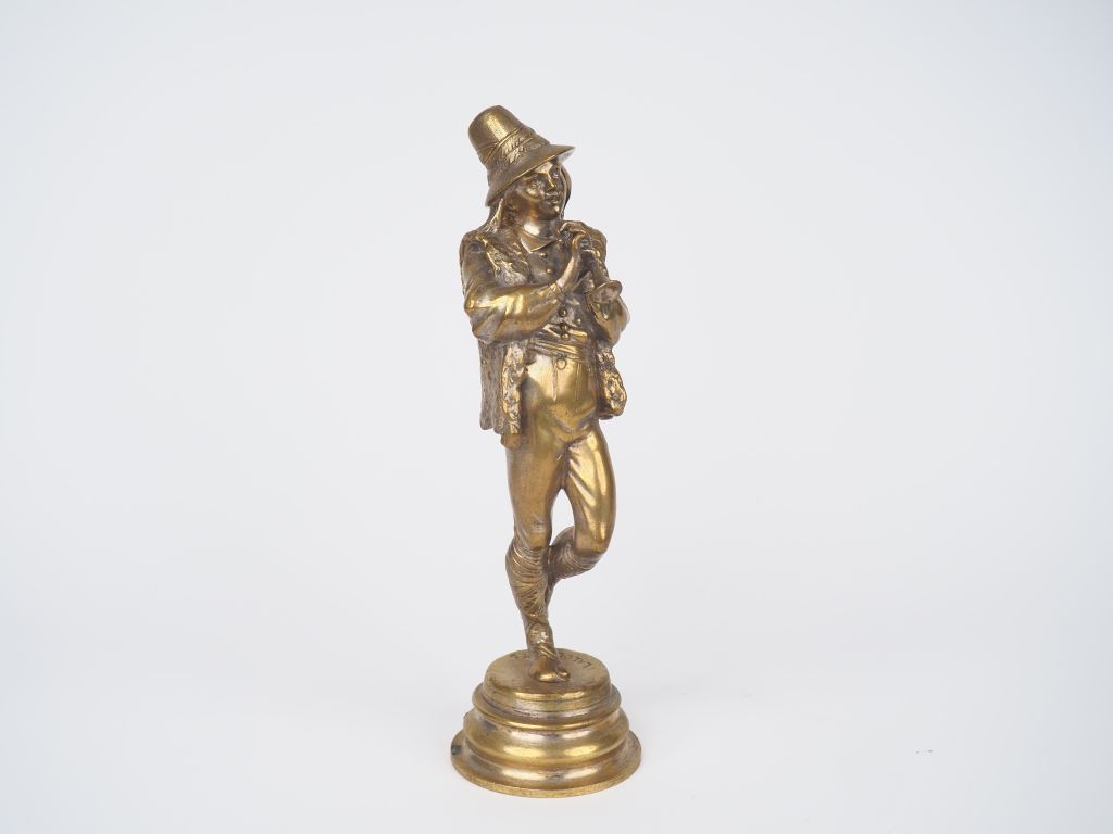 Lot de LALOUETTE. "Jeune musicien". Sujet en bronze. Signé. H. 24 cm. au prix de 60 à 80 € en vente aux enchères par l'hôtel des ventes Primardeco