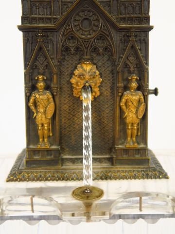 Pendule XIXème de style Troubadour dite à la fontaine en bronze et cristal. (Parfait état) H. 39 cm.
