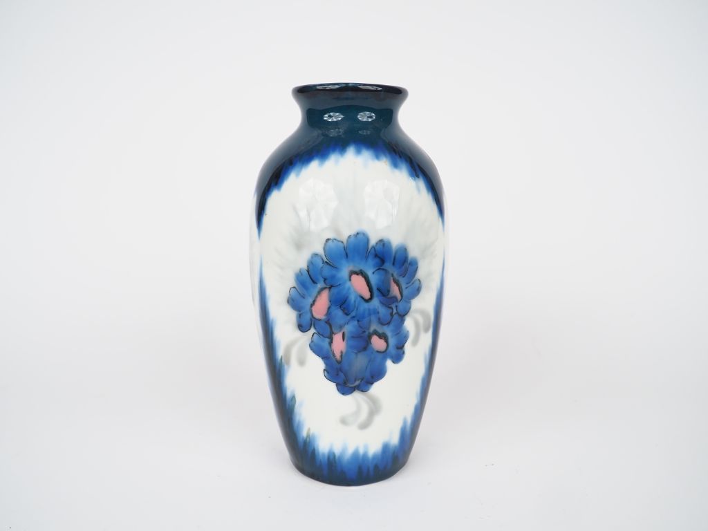 THARAUD à Limoges. Vase en porcelaine polychrome à décor de fleurs. Signé. H. 27cm .