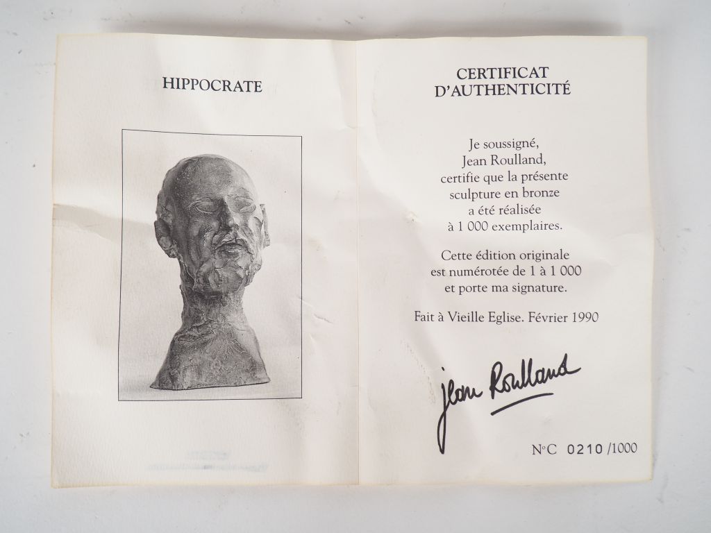 Jean ROULLAND. "Hippocrate". Sculpture en bronze à patine médaille. Signée et numérotée 210/1000. Un certificat d'authenticité sera délivré à l'acquéreur. Dim. 27,5 x 13,5 x 17 cm.