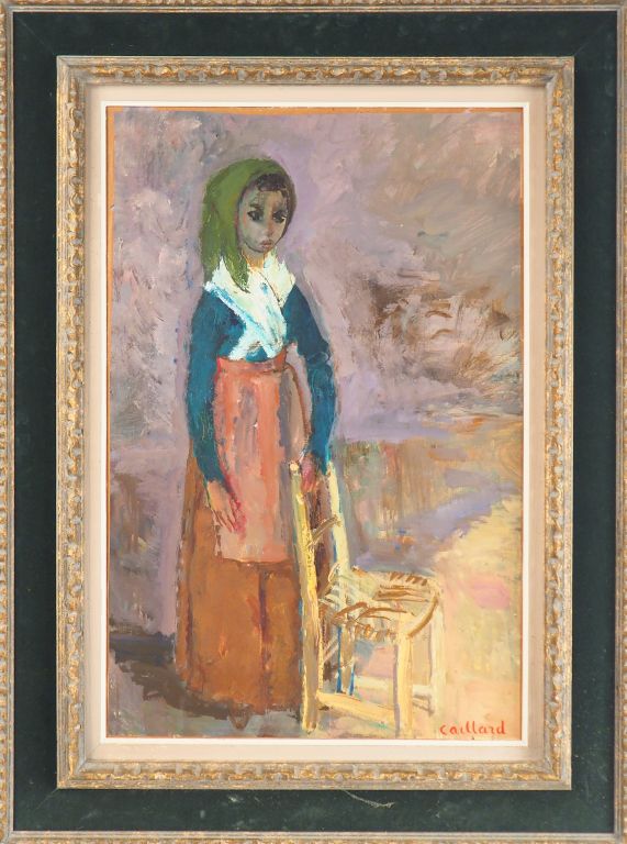 Christian Hugues CAILLARD. "Portrait de jeune femme au fichu". Huile sur isorel, signée en bas à droite. Dim. 80,5 x 54 cm.