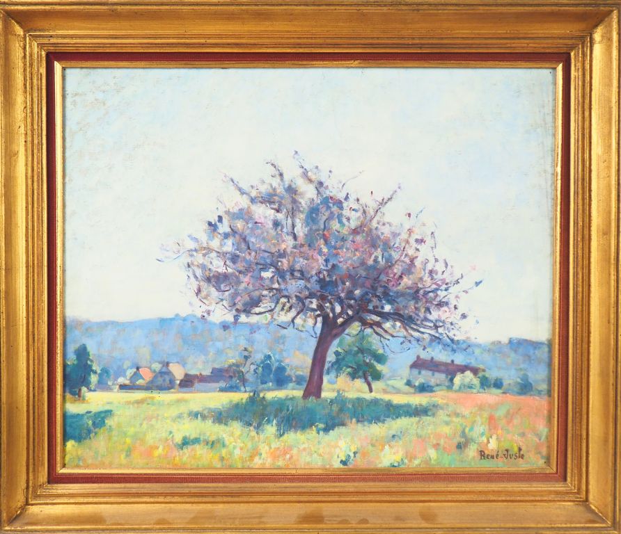 RENE-JUST (René Camille Juste dit). "Vue de village dans un paysage estival". Huile sur toile, signée en bas à droite. Dim. 50 x 61 cm.
