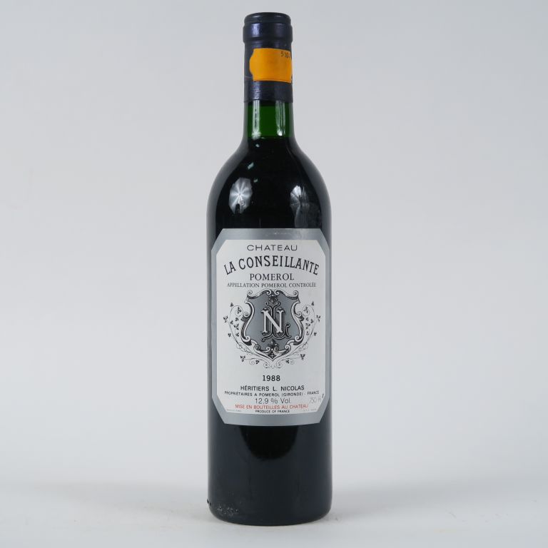 Lot de 1 BOUTEILLE CHÂTEAU LA CONSEILLANTE POMEROL - 1988 - BG+ au prix de 70 à 80 € en vente aux enchères par l'hôtel des ventes Primardeco