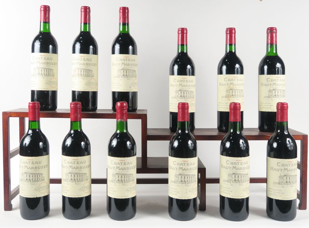 Lot de 12 BOUTEILLES CHÂTEAU HAUT MARBUZET ST ESTEPHE - 1994 - 11 BG/1 LB au prix de 240 à 260 € en vente aux enchères par l'hôtel des ventes Primardeco