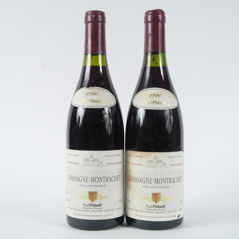 Lot de 2 BOUTEILLES CHASSAGNE MONTRACHET PAUL PIDAULT - 1990 au prix de 40 à 50 € en vente aux enchères par l'hôtel des ventes Primardeco