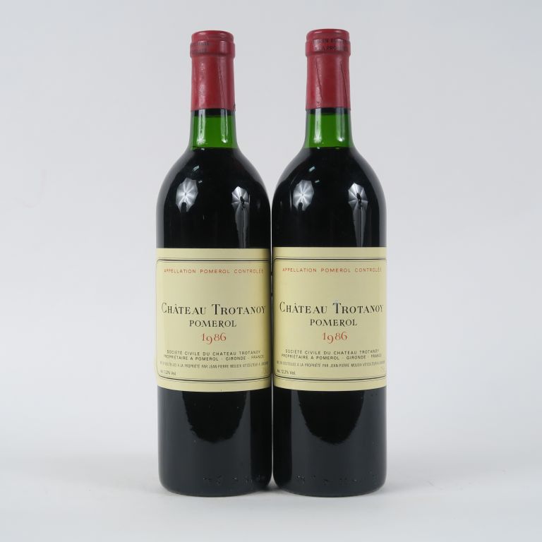Lot de 2 BOUTEILLES CHÂTEAU TROTANOY POMEROL - 1986 - BG au prix de 130 à 140 € en vente aux enchères par l'hôtel des ventes Primardeco