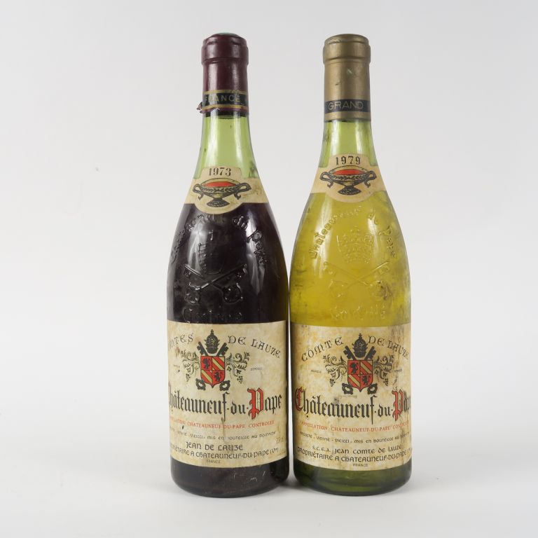 2 BOUTEILLES CHATEAUNEUF DU PAPE JEAN LOZES : 1 BLANC de 1979 - 1 ROUGE de 1973