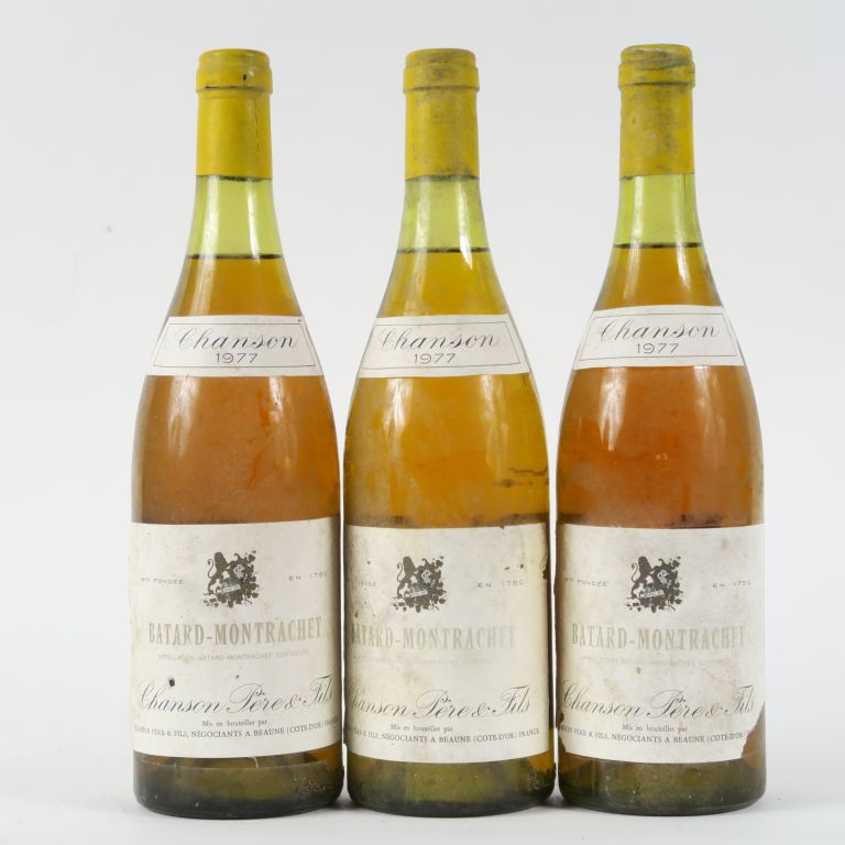 Lot de 3 BOUTEILLES BATARD MONTRACHET GC CHANSON - 1977 au prix de 120 à 130 € en vente aux enchères par l'hôtel des ventes Primardeco