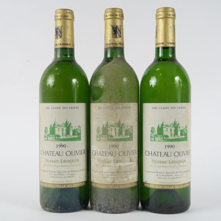 Lot de 3 BOUTEILLES CHÂTEAU OLIVIER GRAVES - 1990 - BG+ au prix de 25 à 30 € en vente aux enchères par l'hôtel des ventes Primardeco