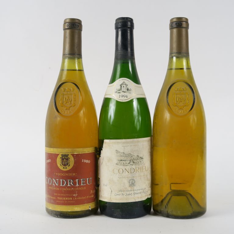 3 BOUTEILLES CONDRIEU : 2 DELAS 1980 (1 PRÉSUMÉE) - 1 CAVE ST DESIRAT 1994