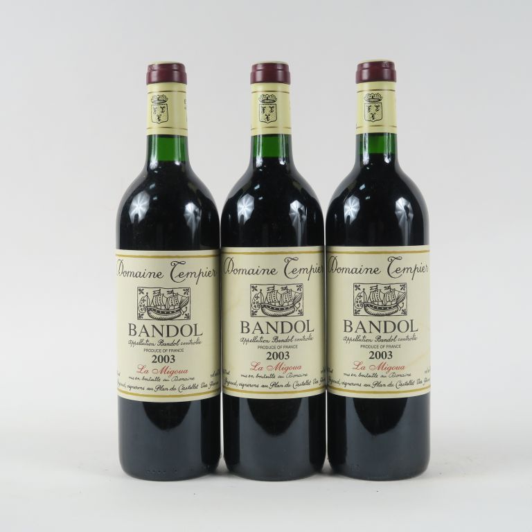 Lot de 3 BOUTEILLES DOMAINE TEMPIER 'LA MIGOUA' BANDOL - 2003 au prix de 60 à 80 € en vente aux enchères par l'hôtel des ventes Primardeco