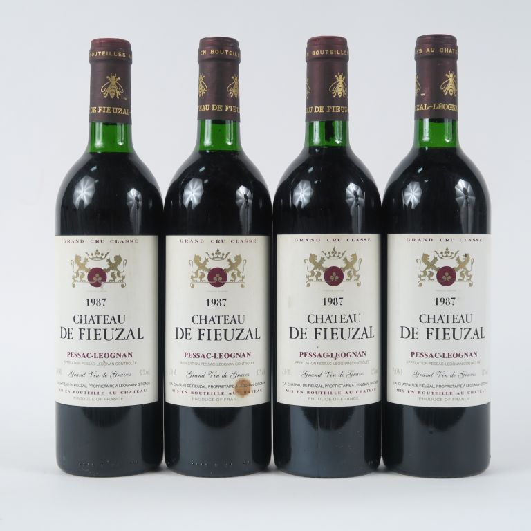 Lot de 4 BOUTEILLES CHÂTEAU DE FIEUZAL GCC GRAVES - 1987 - BG au prix de 60 à 70 € en vente aux enchères par l'hôtel des ventes Primardeco