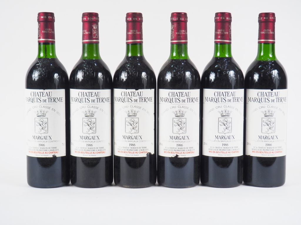 6 BOUTEILLES CHÂTEAU MARQUIS DE TERME GCC MARGAUX - 1986 - CBO - 3 BG/3 LB