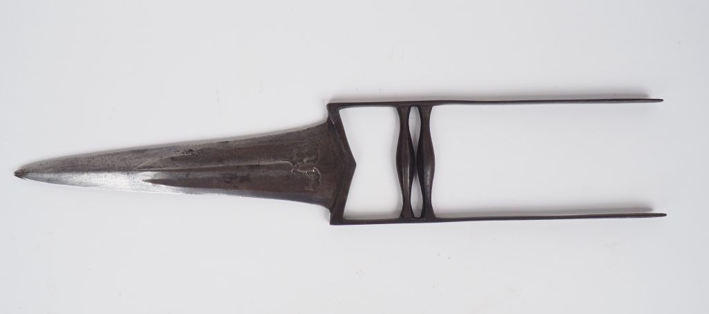 Grand katar Inde Moghole, pointe renforcée pour briser les cotes de maille, deux gorges parallèles, longueur totale 410 mm. (Etat 1-état neuf).