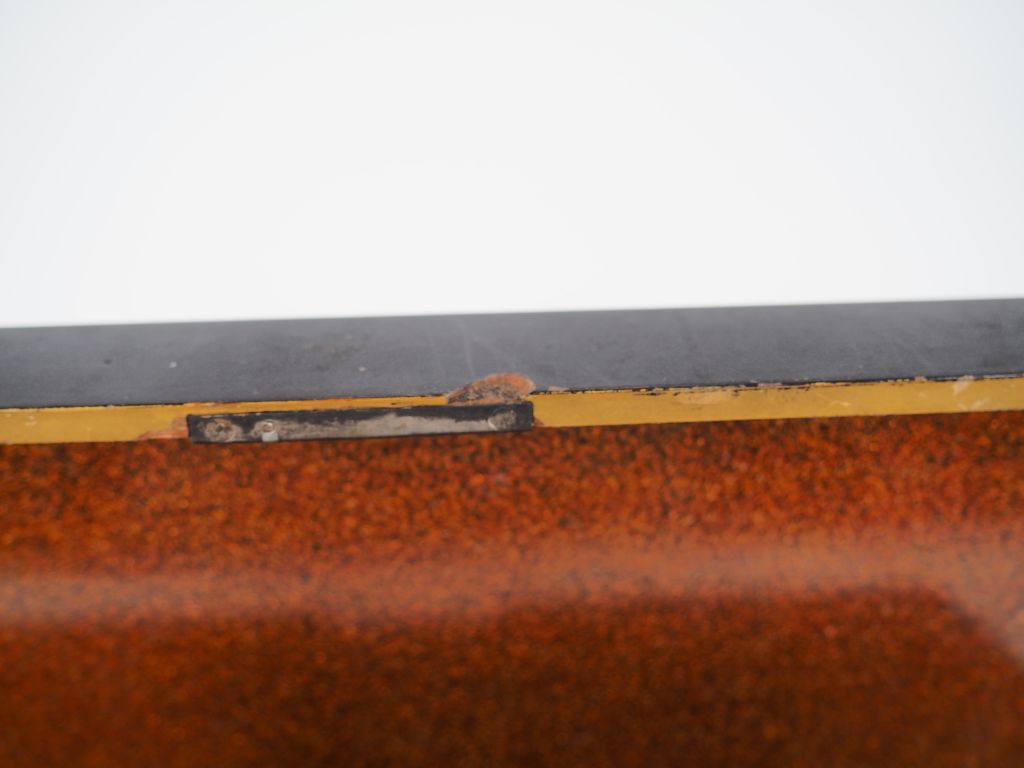 Petit coffret à décor or sur fond noir d'éventails, intérieur en laque aventurine Japon période Meiji H. 8 x 27,5 x 10 cm