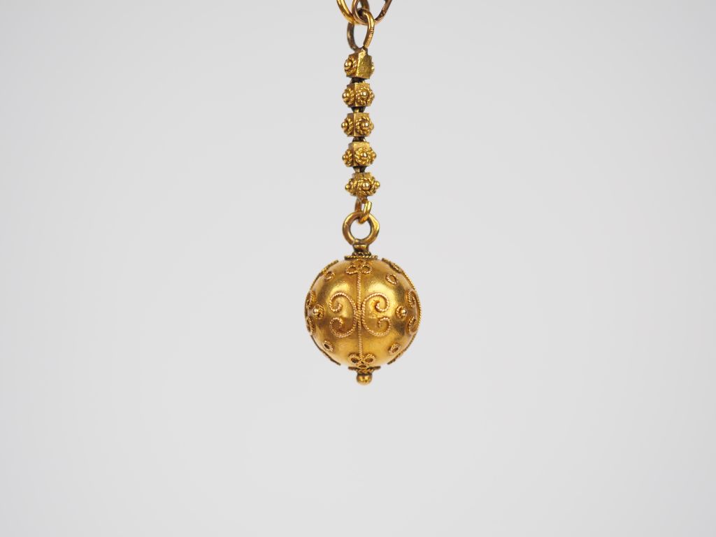 Bracelet en or jaune, à décor d’une pendeloque en forme de boule. Poids. 12.19 g
