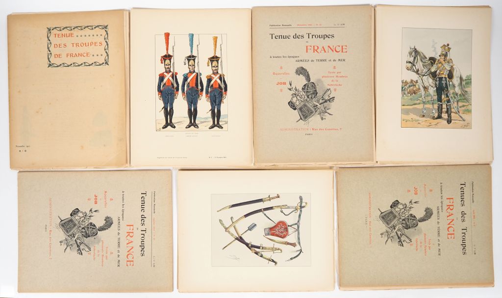 JOB. "Tenue des troupes de France". Lot de 14 fascicules : - Novembre/Décembre 1901. (2 fascicules) - Janvier-Décembre 1900. (12 fascicules)