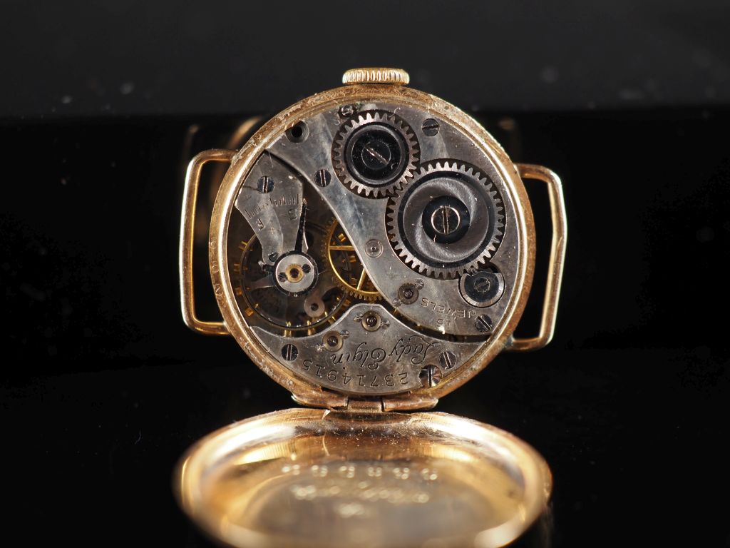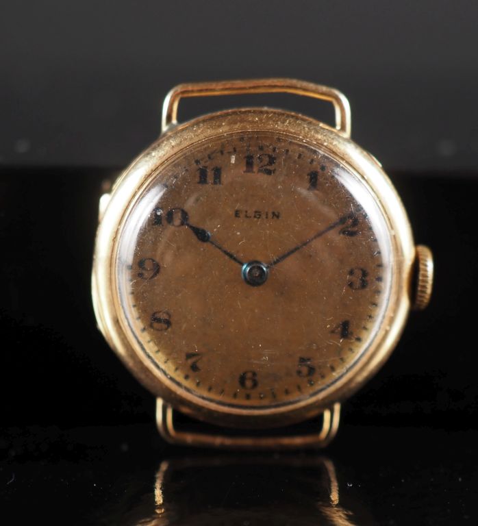 ELGIN Boitier de montre en or jaune 585. Cadran rond à chiffres arabes pour les heures. Chemin de fer pour les minutes. Diam. 23 mm Poids tel. 13,02 g