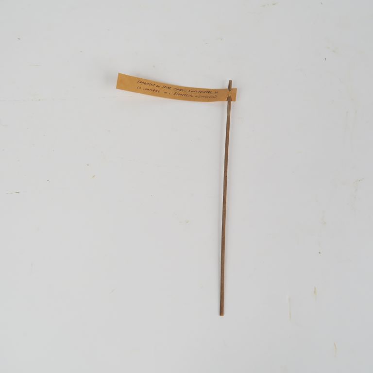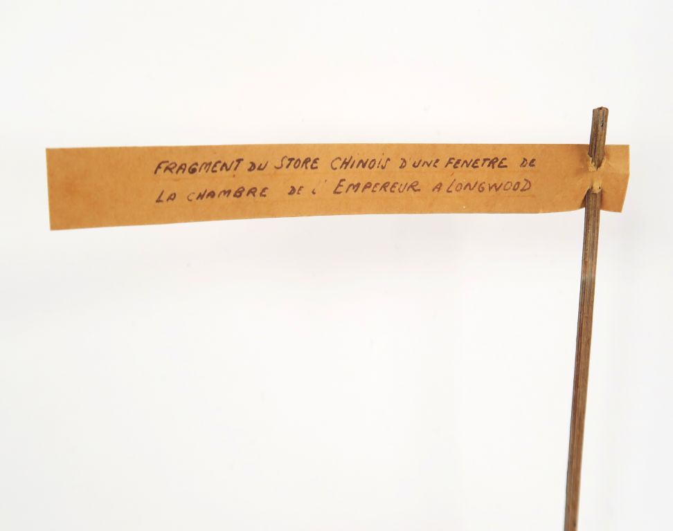 Lamelle de store en bambou. Longueur : 17 cm. Avec étiquette manuscrite « FRAGMENT DU STORE CHINOIS D’UNE FENETRE DE LA CHAMBRE DE l’EMPEREUR A LONGWOOD » A.B.E.