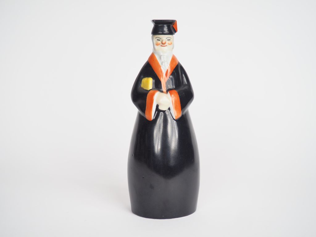 Lot de ROBJ. Bouteille à liqueur en porcelaine polychrome "Magistrat". Signée au prix de 80 à 120 € en vente aux enchères par l'hôtel des ventes Primardeco