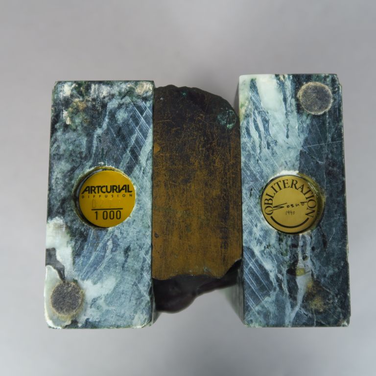 Sacha SOSNO "Oblitération" Sculpture en bronze et marbre. Edition Artcurial, 1990. Numérotée 0277/1000. H. 17 cm