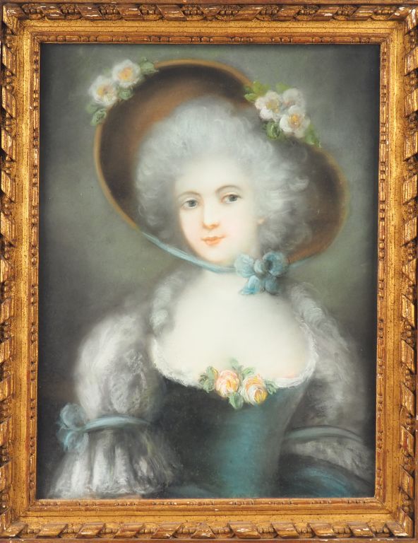Lot de Ecole Française XVIIIème. "portrait d'élégante au chapeau fleuri". P au prix de 400 à 600 € en vente aux enchères par l'hôtel des ventes Primardeco