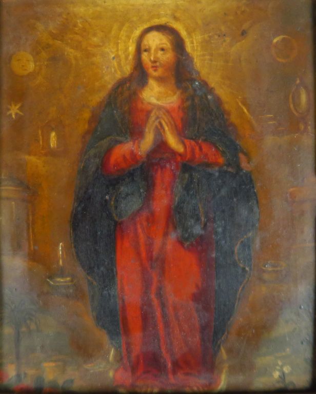 Ecole française XVIIIème "Vierge" Huile sur cuivre. 10 x 8 cm
