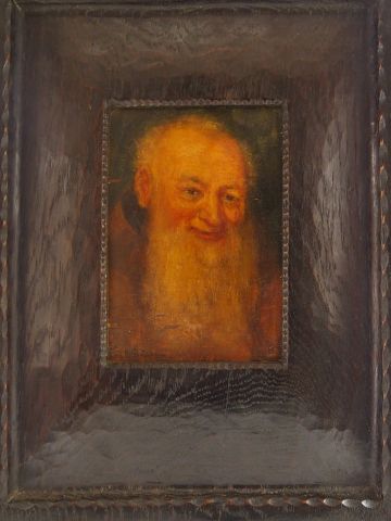 A. GROSSMANN, " Le moine ". Huile sur panneau, signée en bas à gauche, dans un joli cadre en ébène. 16,5 x 11,5cm