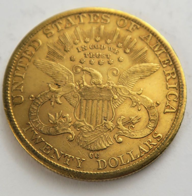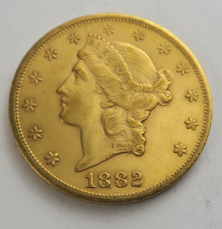 1 pièce de 20 dollars or 1882 CC. Frais acheteur 20 % TTC