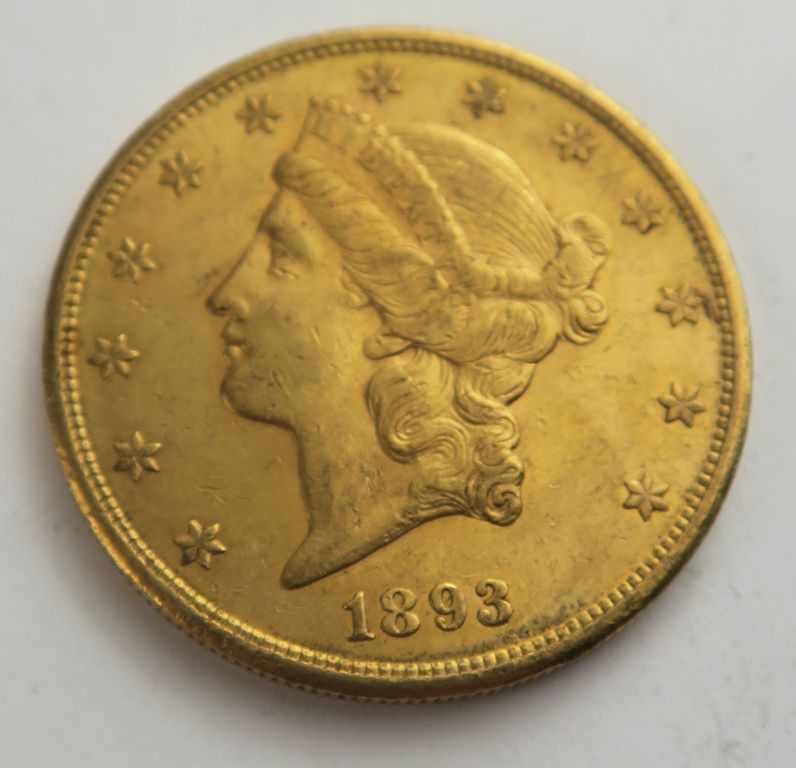 1 pièce de 20 dollars or 1893 S. Frais acheteur 20 % TTC