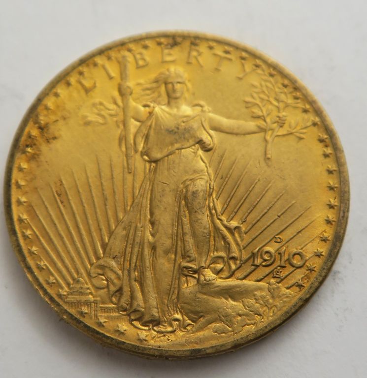 1 pièce de 20 dollars or 1910 D. Frais acheteur 20 % TTC