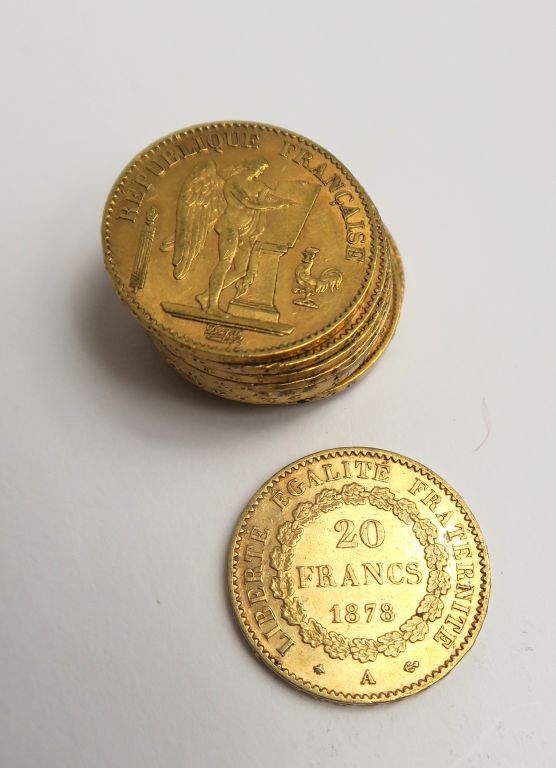 10 pièces 20 francs or. Frais acheteur 5 % TTC