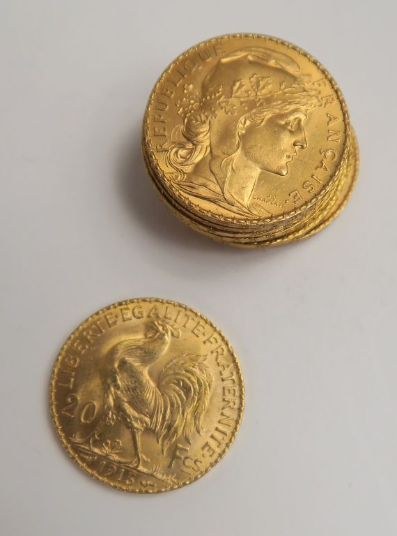 10 pièces 20 francs or. Frais acheteur 5 % TTC