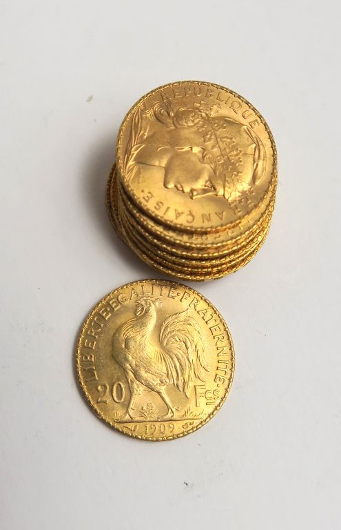 10 pièces 20 francs or. Frais acheteur 5 % TTC