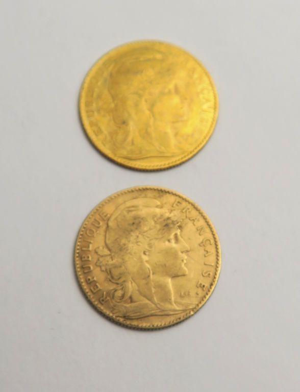2 pièces 10 Francs or. Frais acheteur 5 % TTC