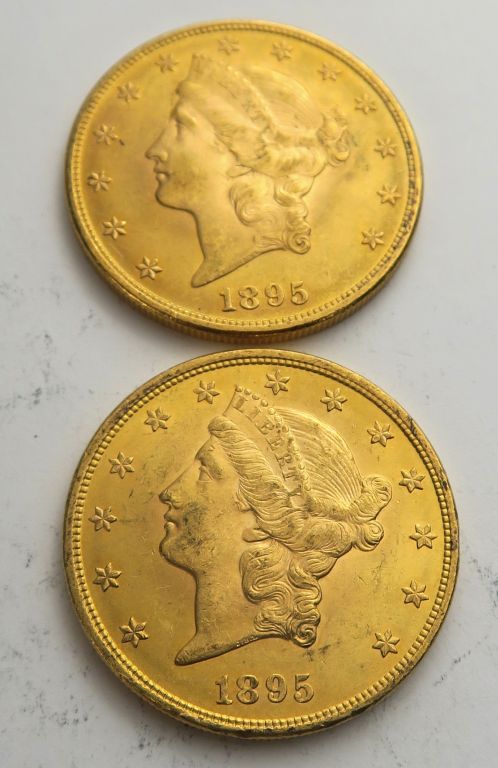 2 pièces de 20 Dollars or 1895. Frais acheteur 5 % TTC
