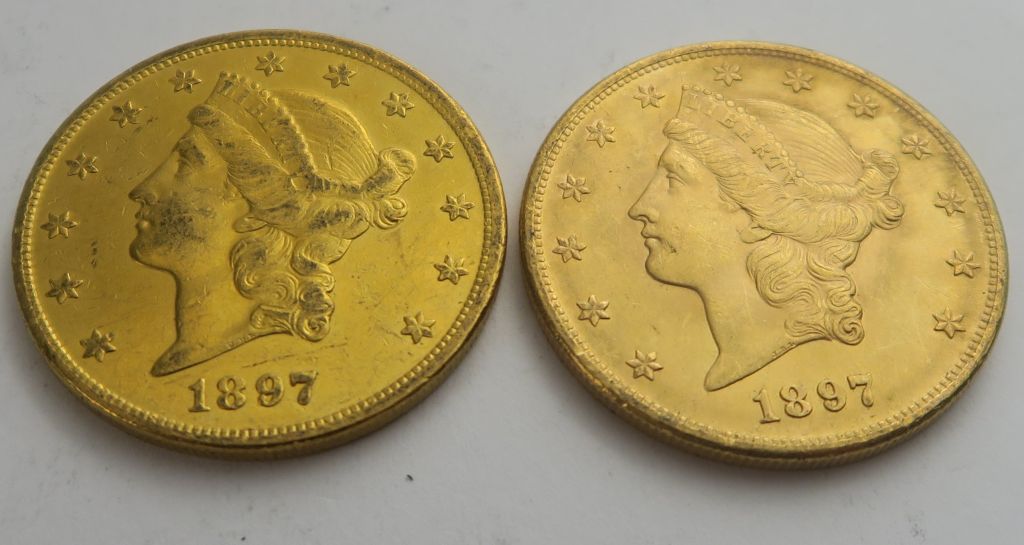 2 pièces de 20 dollars or 1897. Frais acheteur 20 % TTC
