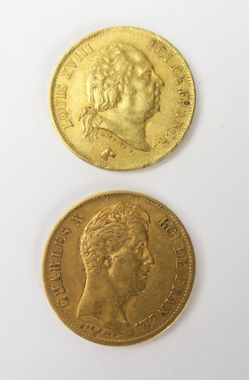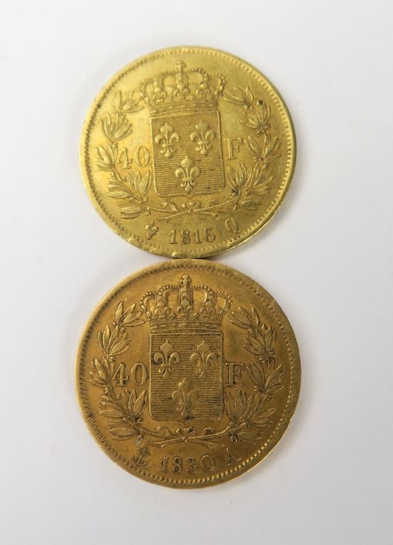 2 pièces de 40 francs en or, 1830 A ET 1816 Q FRAIS ACHETEUR : 5 % TTC