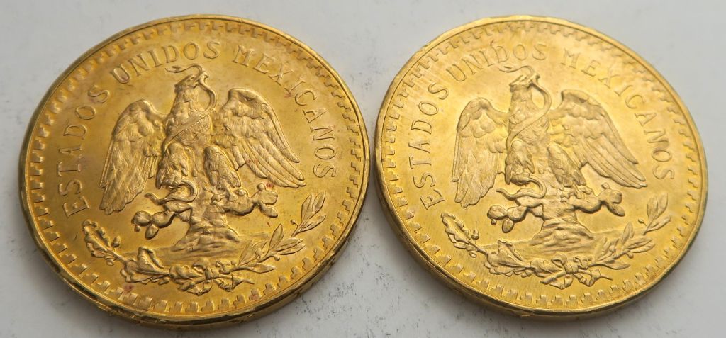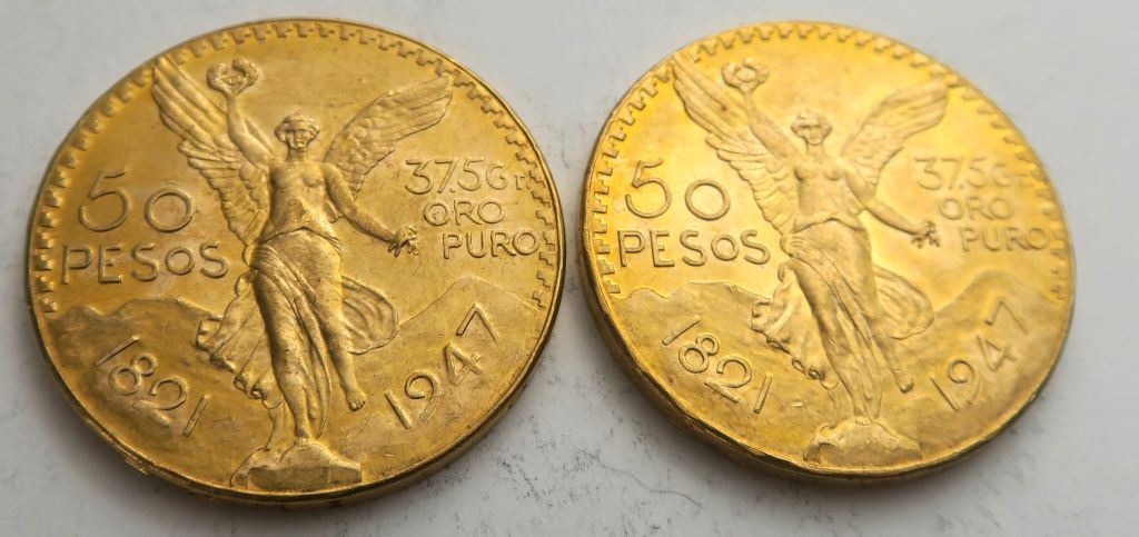 2 pièces de 50 pesos or. Frais acheteur 5 % TTC